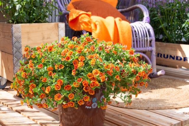Chalibrachoa hybrid Aolha Double Orange is a bedding plant well used in both pots and hanging flower pots.
